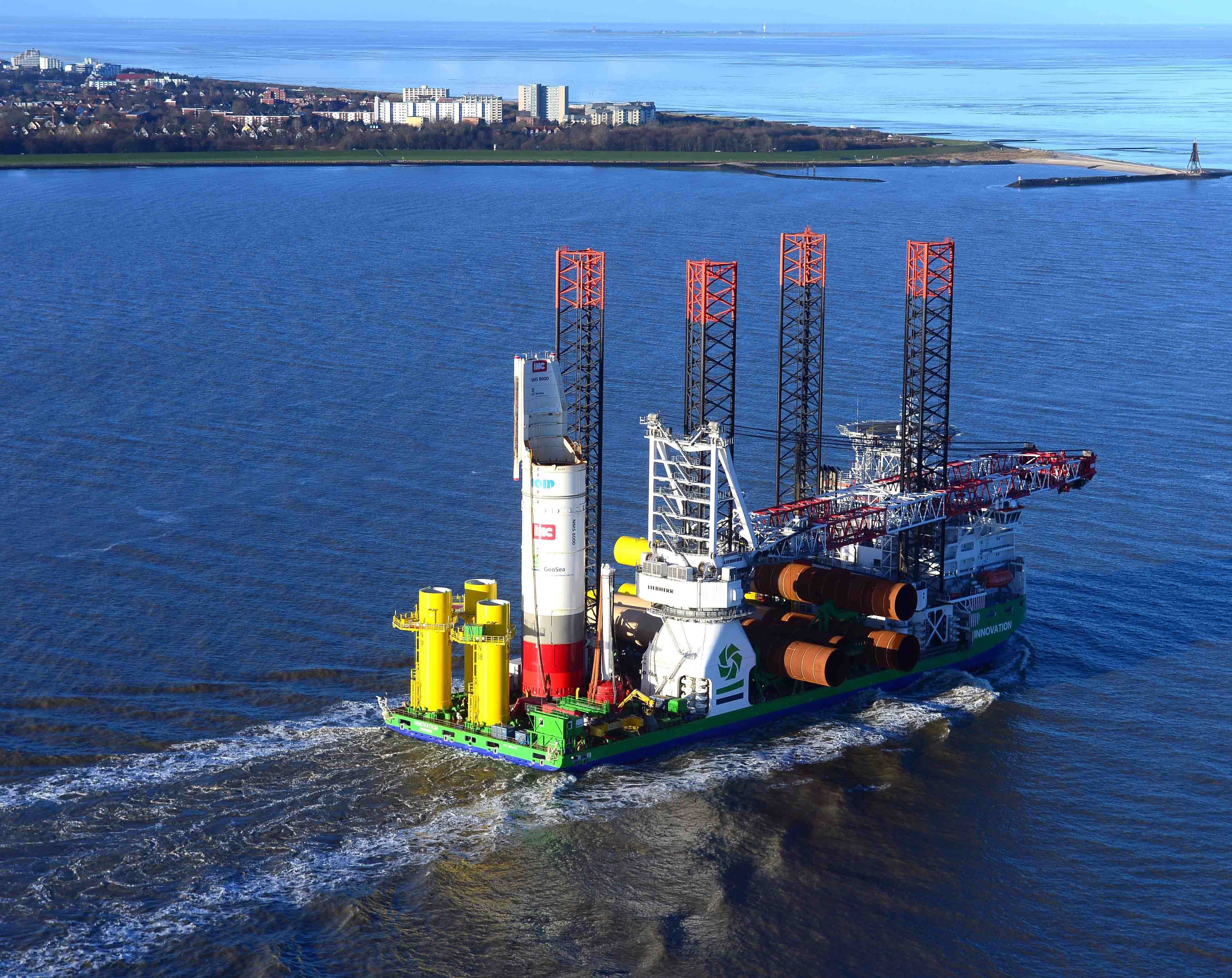 The Nordsee One project will be executed by the world’s biggest jack-up vessel Innovation that recently completed construction of the nearby offshore wind farm Godewind. After some modifications in order to be prepared for the next challenge, the Innovation, sailing under German Flag with Bremen as port of registry, arrived at the port of Cuxhaven. Cuxhaven will serve as the base port from which the construction works will be executed.