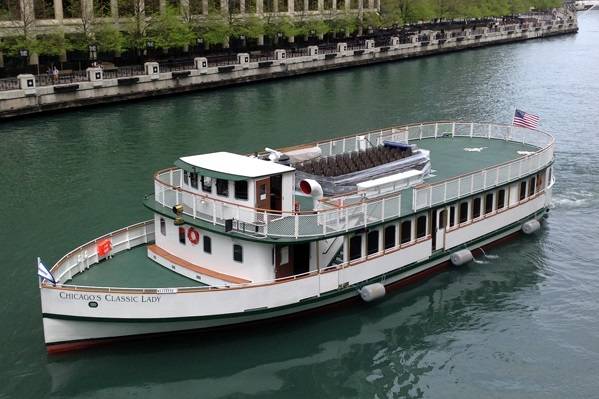 Designed to carry a maximum of 299 passengers, Chicago’s Classic Lady will be used for upscale private parties, wedding rehearsal dinners and corporate events, as well as, serve as an official vessel for the Chicago Architecture Foundation River Cruise.